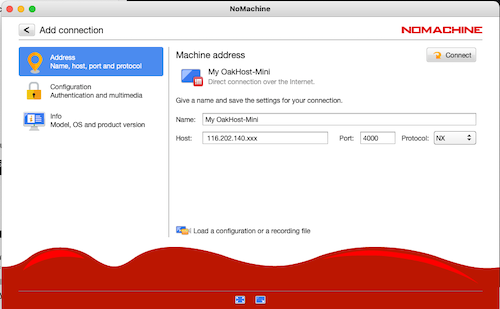 Connectund Sie werden nach den Anmeldedaten gefragt. Verwenden Sie die von OakHost bereitgestellten Anmeldedaten und genießen Sie die reibungslose und schnelle Verbindung mit NoMachine!