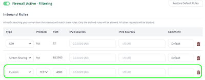 Benutzerdefiniertmit ProtokollTCPund Port4000. Scrollen Sie nach unten und klicken Sie aufÄnderungen übernehmen. Sie sollten nun folgendes Ergebnis erhalten: