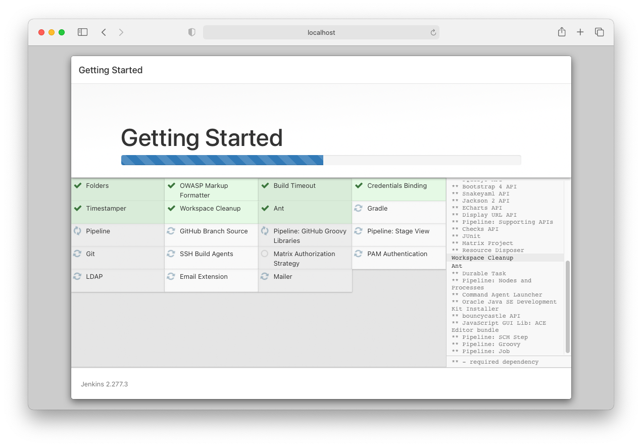 - Congratulations, you're done! Jenkins should now be up and running. Keep on reading to learn how to open up your instance for external access, add HTTPS support via Let's Encrypt and install the Xcode plugin, if needed.